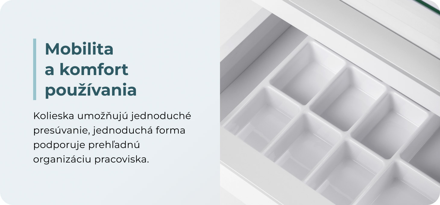 Podiatrický asistent 984 je jednoduchý a funkčný kus nábytku určený pre podiatrické ordinácie, kozmetické salóny a iné ošetrovacie priestory, kde je dôležitá dobrá organizácia pracoviska. Uľahčuje ukladanie nástrojov, kozmetiky a vybavenia, čím prináša do interiéru poriadok a estetiku.