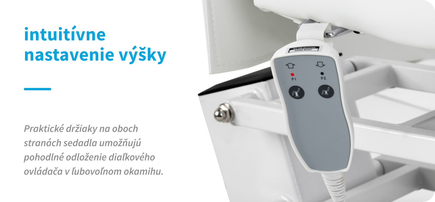 Káblové diaľkové ovládanie umožňuje nastaviť výšku sedadla v rozmedzí 63-85 cm. Rozsah nastavenia umožňuje ľahko prispôsobiť polohu typu vykonávaného ošetrenia, pričom sa zohľadňuje pohodlie klienta a ergonómia práce špecialistu. Pre väčšie pohodlie je možné diaľkové ovládanie zavesiť na držiaky umiestnené na oboch stranách sedadla.