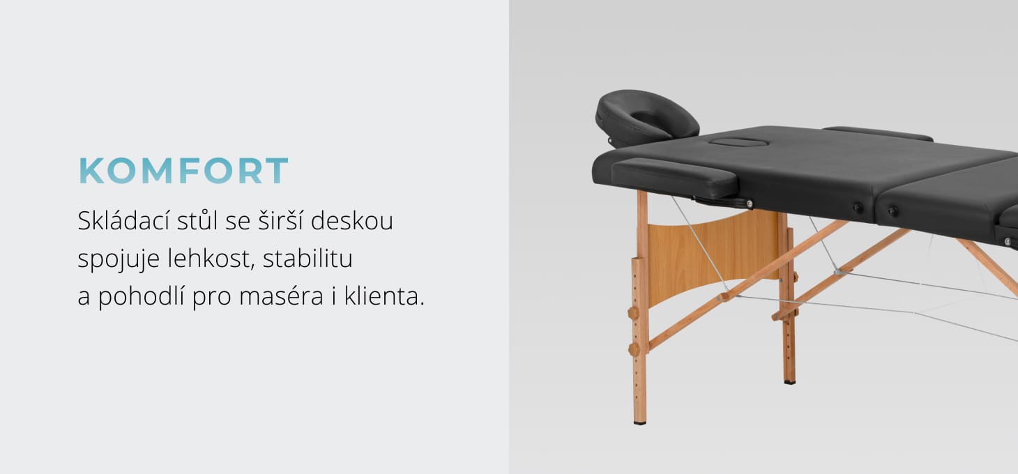 Skládací masážny stôl BALANCE Lux s drevenými nohami je praktické a všestranné riešenie určené pre každodennú prácu masérov, fyzioterapeutov a ďalších odborníkov. Triudielna konštrukcia zabezpečuje stabilitu a pohodlie pre cvičiaceho a pacienta. Vďaka kompaktním rozměrům, nízké hmotnosti a přiložené prenosné tašce je ideální i pro mobilní práci - umožňuje rychlé a pohodlné složení a přenášení.