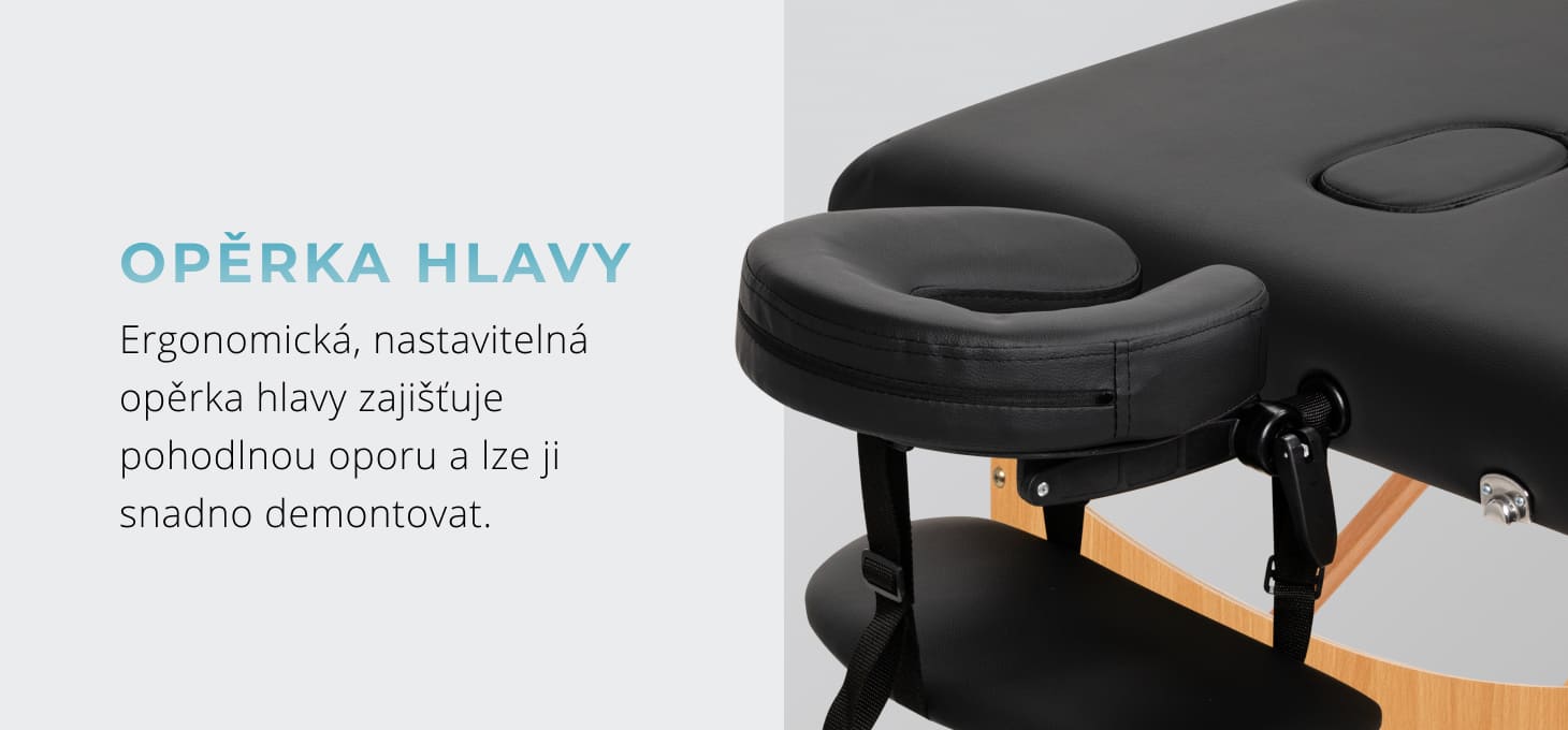 Pre maximálnu pohodlí si osoba používajúca stôl môže oprieť hlavu o ergonomickú opierku hlavy, ktorá je súčasťou dodávky. Tento prvok je ľahko nastaviteľný - umožňuje nastavenie úhlu sklonu vo dvoch rovinách, čo umožňuje presne prispôsobiť jeho nastavenie potrebám užívateľov a charakteru vykonávaných procedúr. Pro terapii vleže na zádech možno opěrku hlavy vyjmout a nahradit ji otorem v desce stolu. Ak sa otvor nepoužíva, možno jej zakrýt dodávanou zátkou, čímž sa obnoví estetický a jednotný vzhled povrchu.