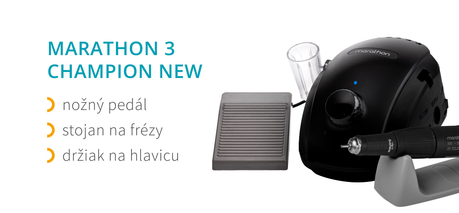 Saeyang Marathon 3 Champion NEW je nová, osviežená generácia obľúbeného modelu špičková frézka, ktorú oceňujú profesionáli. Uľahčuje dôkladnú prípravu kožičky a nechtov, ako aj odstraňovanie zvyškov z predchádzajúcich úprav nechtov, čím výrazne uľahčuje ich prípravu na ďalšie ošetrenie. Vďaka dobre vyváženej hlave a dokonale premysleným funkciám je frézka ideálna na profesionálne aj domáce použitie.