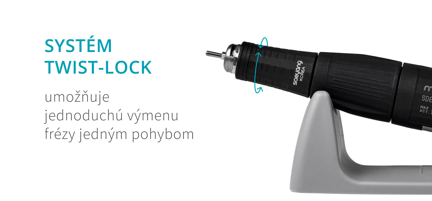 Funkčná, vysoko presná hlava SH37LN dokonale sedí v ruke a zaisťuje vysokú úroveň pohodlia. Dosahuje maximálnu rýchlosť až 40 000 otáčok za minútu, čo uľahčuje jej používanie. Je vybavená ľahko použiteľným systémom Twist-Lock, ktorý umožňuje rýchlu výmenu fréz. Práca je tak mimoriadne jednoduchá a intuitívna, čo ocenia aj náročnejší používatelia. Fréza je dobre vyvážená a ergonomicky tvarovaná a jej vibrácie boli znížené, čo znamená, že ani niekoľkohodinová práca s frézou nadmerne neunavuje ruku. Plastový kryt obmedzuje prúdenie tepla, takže zahrievanie prístroja nie je citeľné. Flexibilný odpružený kábel poskytuje vysokú úroveň pohodlia, pričom pri výraznom natiahnutí dosahuje dĺžku až 135 cm.