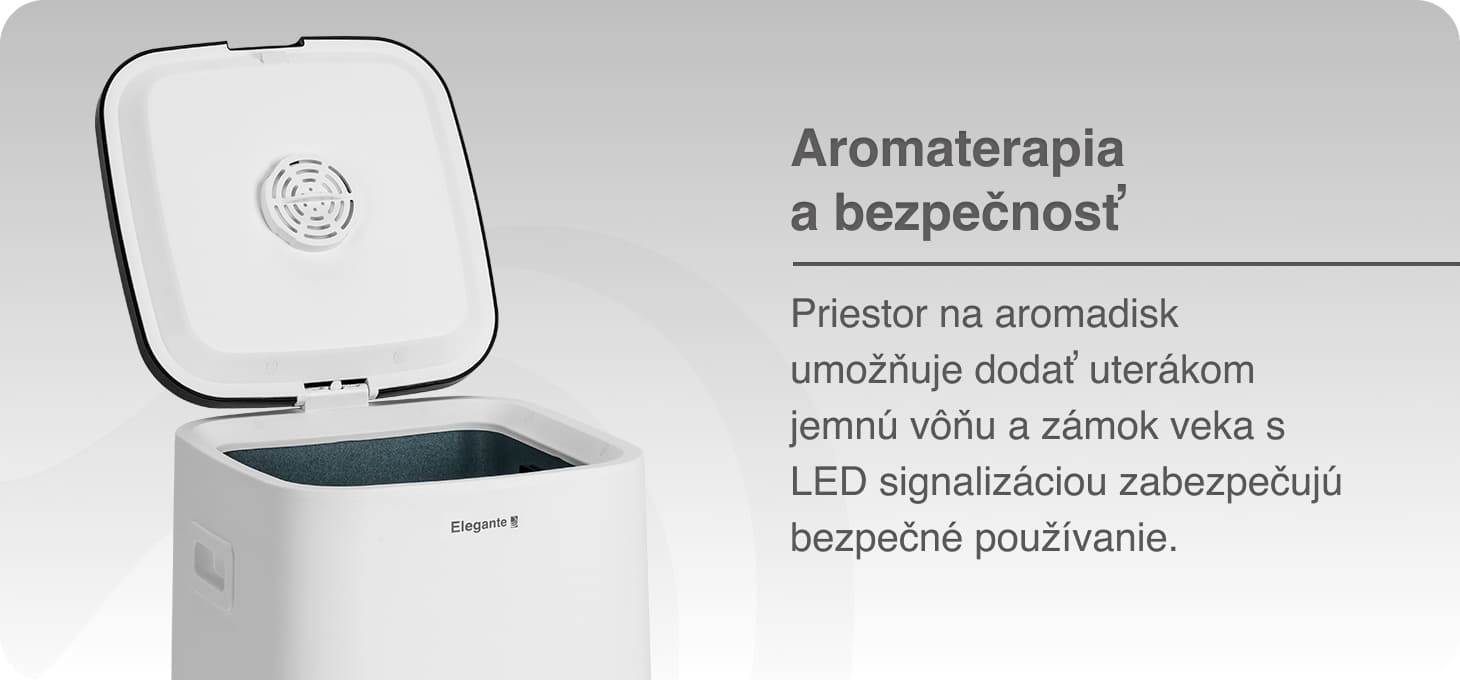 Vnútorná strana veka má vyhradený priestor pre aromaterapeutický disk, takže vyhrievané uteráky môžu byť obdarené jemnou, upokojujúcou vôňou. Krúžok LED okolo displeja indikuje teplotu: pri teplote nižšej ako 60 °C svieti na zeleno a pri vyššej ako 60 °C svieti na červeno. Ďalšie LED diódy indikujú zvolené nastavenia ohrevu. Okrem toho zámok otvárania zabraňuje nekontrolovanému prístupu detí a chráni ich pred popálením. Súčasťou balenia sú aj háčiky na zavesenie predmetov vo vnútri spotrebiča.