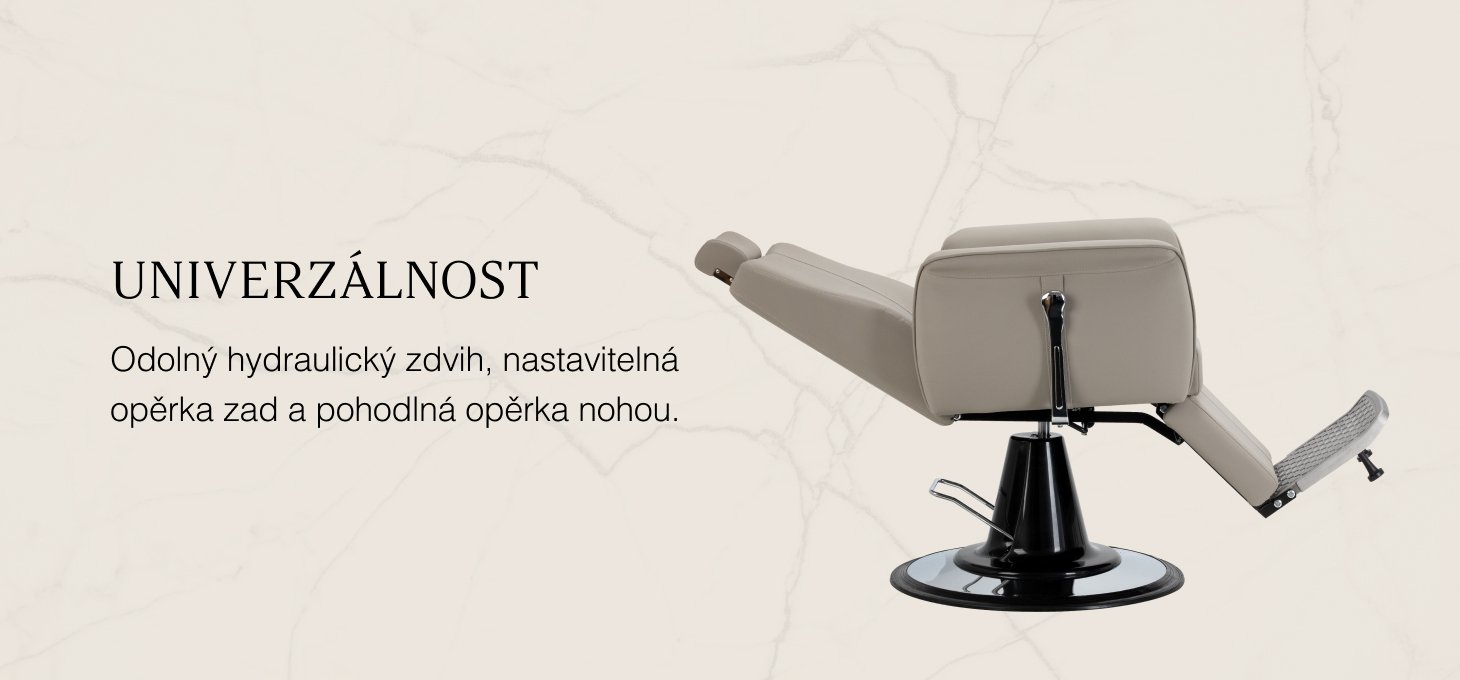Efektívny hydraulický zdvih umožňuje plynulé nastavenie výšky sedadla v rozmedzí 55-67 cm, aj keď klient už sedí v kresle. To zabezpečuje ergonomické pracovné podmienky a uľahčuje nastavenie výšky podľa výšky klienta aj kaderníka. Sklopné operadlo a nastaviteľná opierka nôh umožňujú umiestniť klienta do pohodlnej polohy v pololežiacej polohe, čo zvyšuje komfort pri vybraných službách. Nastaviteľná opierka hlavy poskytuje stabilnú oporu hlavy a krku.