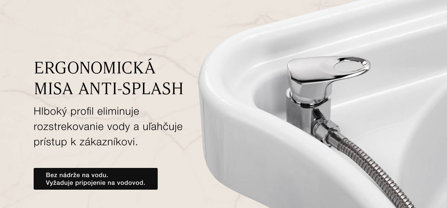 Hlboká miska v elegantnom bielom odtieni bola navrhnutá pre maximálne pohodlie klienta aj ošetrujúceho. Jej dizajn účinne zabraňuje rozstrekovaniu vody a kozmetiky, vďaka čomu sa pracovný priestor ľahko udržiava čistý a uprataný. Jedinečné zakrivenie nielenže uľahčuje prístup osobe vykonávajúcej službu, ale umývačke dodáva aj elegantný, moderný charakter. Premyslená kombinácia funkčnosti a štýlu, ktorá zvyšuje štandard každého priestoru beauty & wellness.