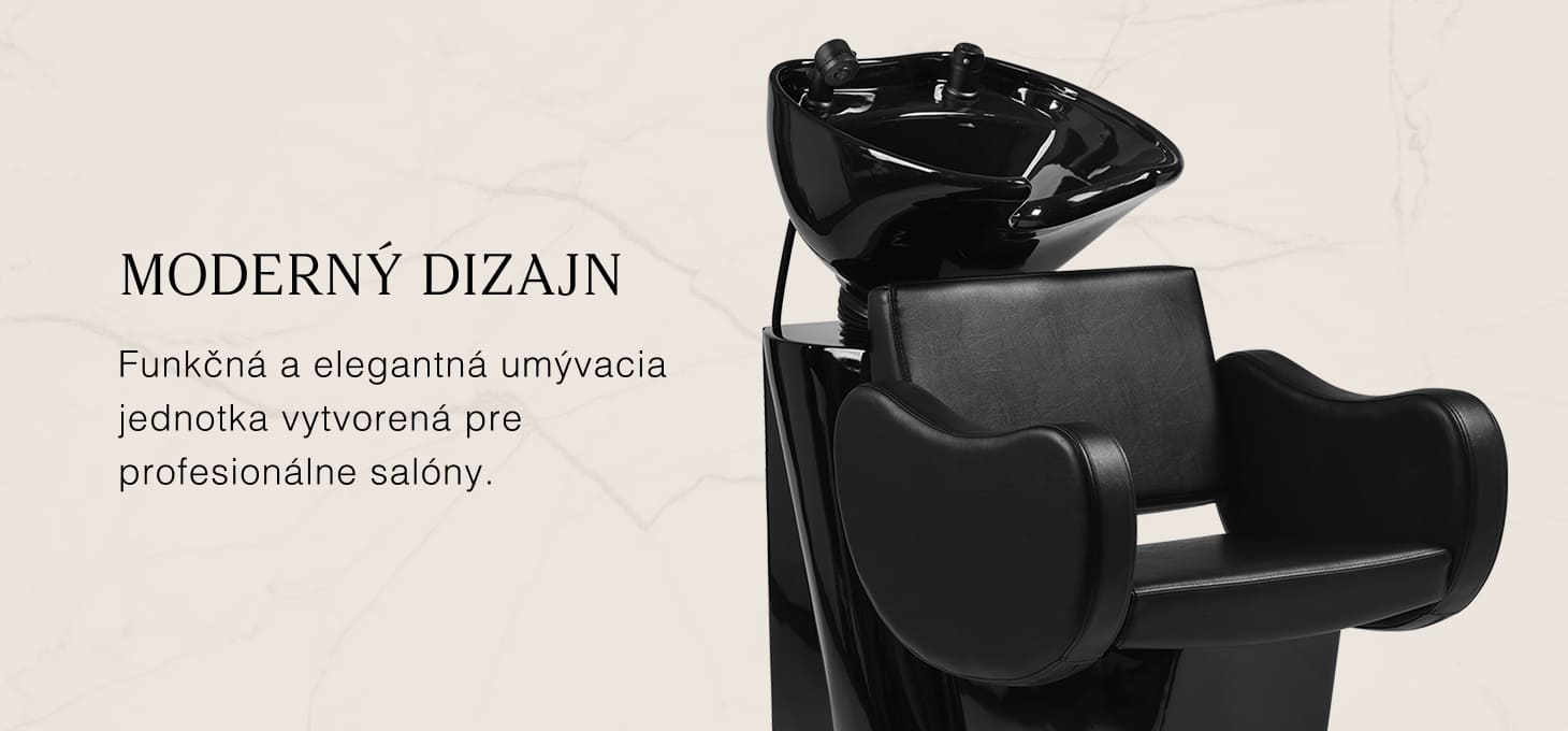 Hlboká keramická miska v odtieňoch čiernej farby znižuje rozstrekovanie vody a produktov používaných počas ošetrenia. Nastaviteľný sklon misy umožňuje prispôsobenie individuálnym potrebám a vďaka použitému materiálu je umývadlo odolné, odolné voči škvrnám a poškriabaniu a ľahko sa udržiava v čistote. Ergonomicky profilovaný golier poskytuje pohodlnú oporu hlavy, zatiaľ čo mäkký čierny plastový kryt eliminuje pocit chladu z keramického povrchu.