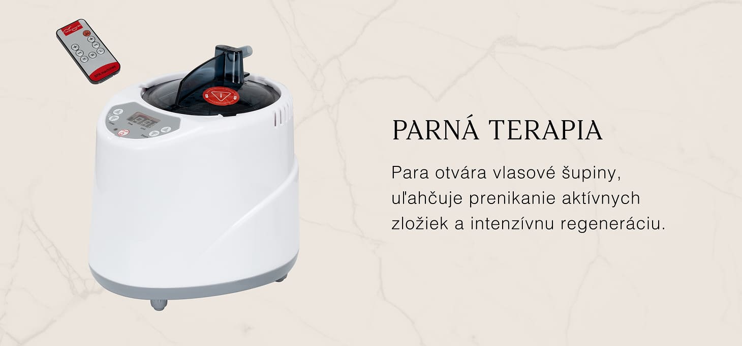 Súprava obsahuje špecializované zariadenie na generovanie pary a špeciálny kryt umývadla , ktorý umožňuje presné ošetrenie. Táto moderná metóda starostlivosti využíva vlastnosti pary na intenzívnu regeneráciu a hydratáciu vlasov. Vďaka tomu aktívne zložky obsiahnuté v maskách, ampulkách a ďalších výrobkoch prenikajú hlbšie, čím podporujú obnovu a posilnenie vlasov. Parná terapia zlepšuje štruktúru vlasov, zvyšuje odolnosť voči poškodeniu a obnovuje zdravý lesk, vďaka čomu sú vlasy jemné, pružné a plné života.