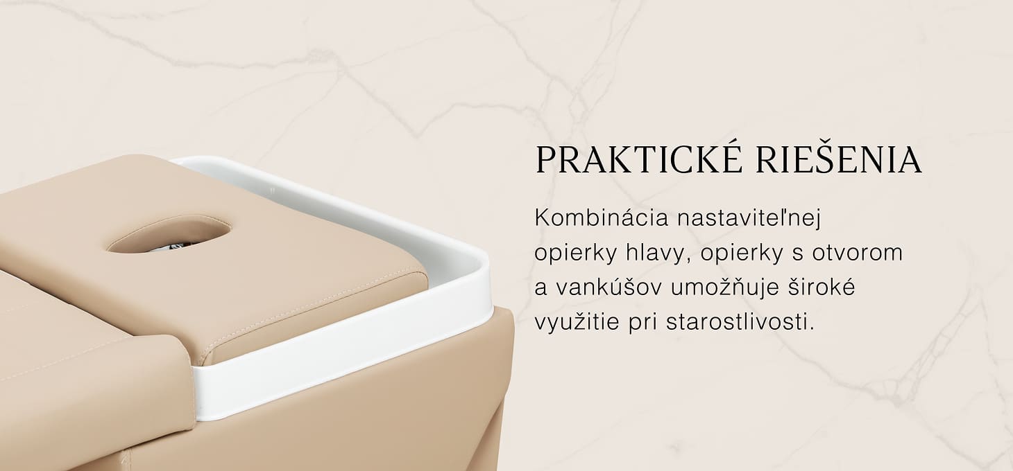 Nastaviteľná opierka hlavy s možnosťou vysunutia a zmeny uhla sklonu umožňuje dokonalé prispôsobenie potrebám používateľa, čím zabezpečuje maximálne pohodlie. Súprava obsahuje aj ergonomické vankúše vrátane opierky hlavy s otvorom na tvár, čo rozširuje možnosti použitia - od ošetrenia pokožky hlavy až po masáže a rôzne terapie tela a tváre. Vďaka týmto praktickým vlastnostiam je ležadlo všestranným vybavením pre salóny krásy a wellness, ktoré spája pohodlie zákazníkov s funkčnosťou potrebnou pre profesionálov.