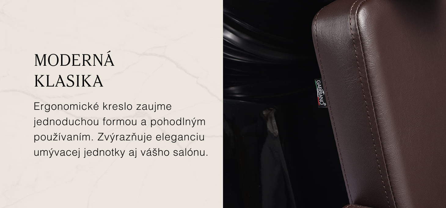 Táto minimalistická stolička s výrazne zaobleným sedadlom spája jednoduchú formu s vysokým komfortom. Operadlo s optimálnym uhlom sklonu podporuje prirodzenú polohu tela. Čalúnenie z kvalitnej syntetickej kože v odtieňoch hnedej farby je odolné a ľahko sa čistí. Moderný dizajn nábytku podčiarkuje elegantný charakter umývacej jednotky a dokonale dopĺňa zariadenie salónu. Súčasťou súpravy je kompletná súprava príslušenstva s matnou povrchovou úpravou v odtieňoch čiernej farby vrátane batérie, sprchovej hlavice a príslušných hadíc, ktorá poskytuje kompletnú sadu pracovných nástrojov.