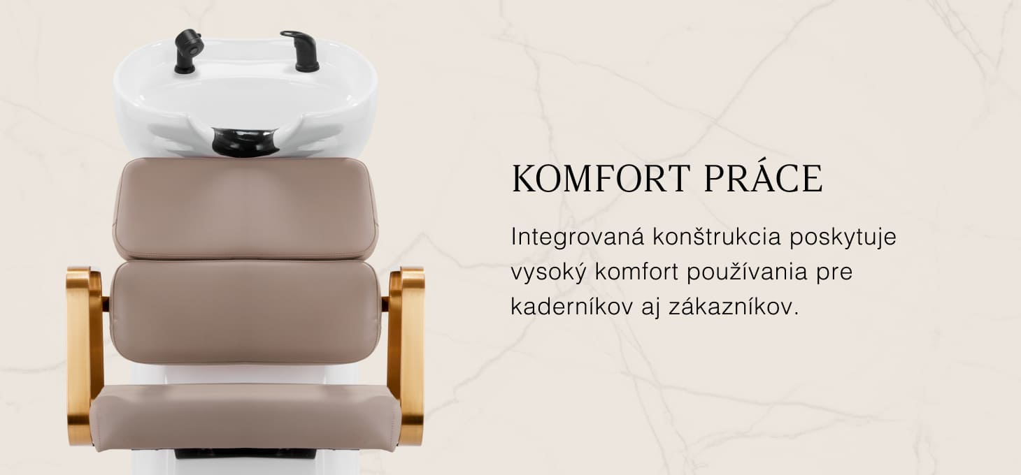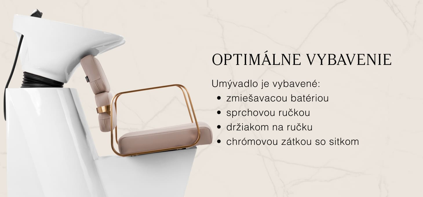 Praktická umývačka vlasov je vybavená zmiešavacou batériou, ktorá poskytuje voľný prístup k teplej a studenej vode. Vďaka tomu je možné ľahko nastaviť teplotu podľa individuálnych preferencií zákazníka. Vyhradené miesto na odloženie slúchadla zefektívňuje prácu a pochrómovaná zástrčka so špeciálnym sitkom umožňuje kontrolovať prietok vody a udržiavať vysoké hygienické štandardy v salóne. Prípojka vody bola umiestnená vo vnútri základne, čo umožňuje efektívne ukrytie potrubia. Významnou výhodou tohto modelu je otvor ponechaný medzi operadlom a sedadlom, ktorý uľahčuje udržiavanie čistoty v salóne a umožňuje ľahko vymetať nečistoty z každého zákutia kresla. Umývačka je vyprofilovaná tak, aby zabezpečila pohodlie počas rôznych ošetrení a zaručila správnu oporu chrbta. Vďaka kombinácii funkčnosti a vybavenia je práca v kaderníckom salóne ešte pohodlnejšia.