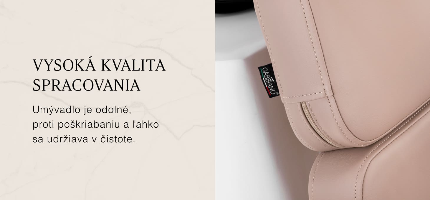 Profilované kreslo poskytuje správnu bedrovú oporu, a teda vysoký komfort používania. Kovové podrúčky v odtieňoch zlatej farby s geometrickým tvarom umožňujú správne polohovanie ramien klienta. Čalúnenie z odolnej peny odolnej voči deformáciám a čalúnenie z na dotyk príjemnej syntetickej kože v béžových odtieňoch zaručujú odolnosť nábytku, jednoduché čistenie a pohodlné používanie na dlhý čas. Originálny, elegantný dizajn autosedačky dodáva interiéru jedinečný výraz. Súčasťou balenia je kompletné príslušenstvo v odtieňoch čiernej farby vrátane batérie, sprchovej rukoväte a vyhradených hadíc, ktoré vám poskytnú kompletnú sadu nástrojov na prácu.