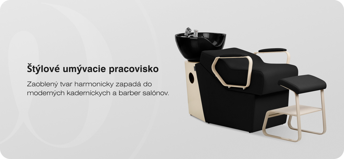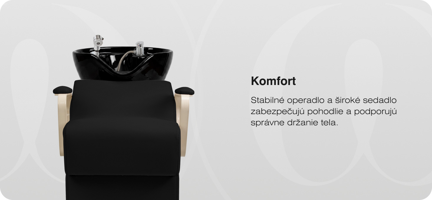 Konštrukcia s moderným dizajnom zaisťuje pohodlné podmienky počas kaderníckych procedúr a podporuje komfort zákazníka aj pri dlhších službách. Stabilná opierka podporuje správne držanie tela a široké sedadlo zvyšuje pohodlie pri používaní. Čalúnenie z umelej kože v odtieňoch čiernej sa vyznačuje odolnosťou voči vlhkosti a ľahkou údržbou, vďaka čomu sa umývadlo dokonale osvedčí aj pri intenzívnom používaní. Nastaviteľná výška nožičiek umožňuje presné vyrovnanie umývadla aj na nerovnom povrchu, čím sa zvyšuje stabilita celého praciska. Kompletná armatúra – batéria, sprchová hlavica a špeciálne hadice – zabezpečuje plnú pripravenosť praciska na prevádzku.