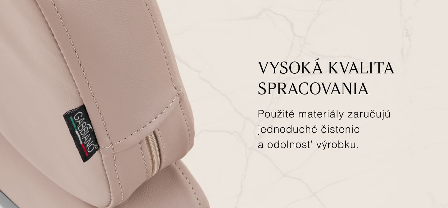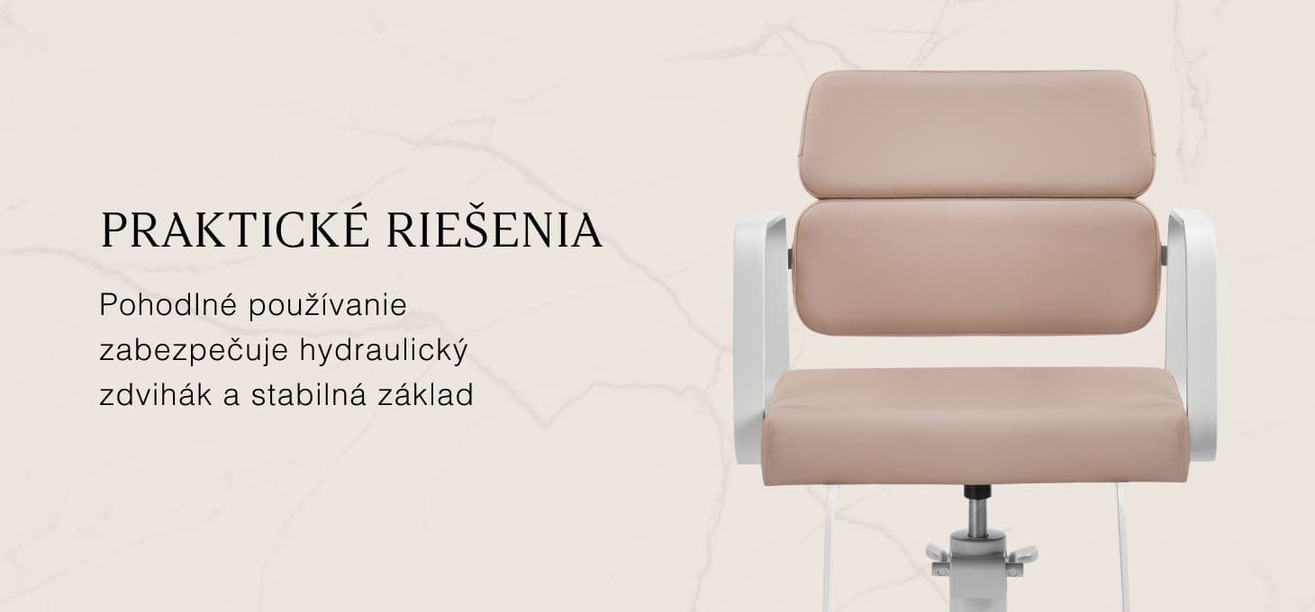 Výplň z odolnej peny odolnej voči deformáciám a čalúnenie z na dotyk príjemnej syntetickej kože zaručujú odolnosť nábytku a jeho pohodlné používanie po dlhú dobu. Vďaka nim je tiež odolný voči vlhkosti, trvácny a ľahko sa čistí. Poťah v béžových odtieňoch mu dodáva jedinečný charakter. Zariadenie sa vyznačuje moderným dizajnom, vďaka ktorému kreslo vyzerá skvele v mnohých profesionálnych salónoch.