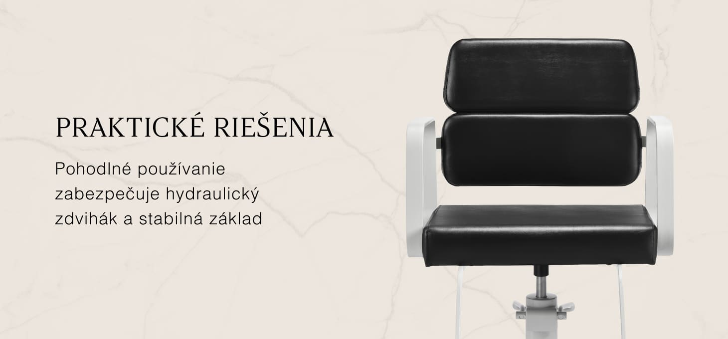 Odolný hydraulický zdvihák umožňuje nastaviť úroveň sedadla v rozsahu 49 - 61 cm - aj keď klient na stoličke sedí. Poskytuje ergonomickejšie pracovné prostredie, pretože umožňuje nastaviť úroveň sedadla podľa výšky klienta aj kaderníka. Vizuálne zaujímavé operadlo umožňuje pohodlnú polohu a poskytuje vynikajúcu oporu chrbta, čo je dôležité najmä pri ošetreniach trvajúcich niekoľko hodín. Veľkým plusom tohto modelu je otvor ponechaný medzi operadlom a sedadlom. Uľahčuje udržiavanie čistoty v salóne, pretože umožňuje ľahké vymetanie vlasov z každého zákutia kresla. To uľahčuje prípravu pracoviska medzi jednotlivými klientmi.