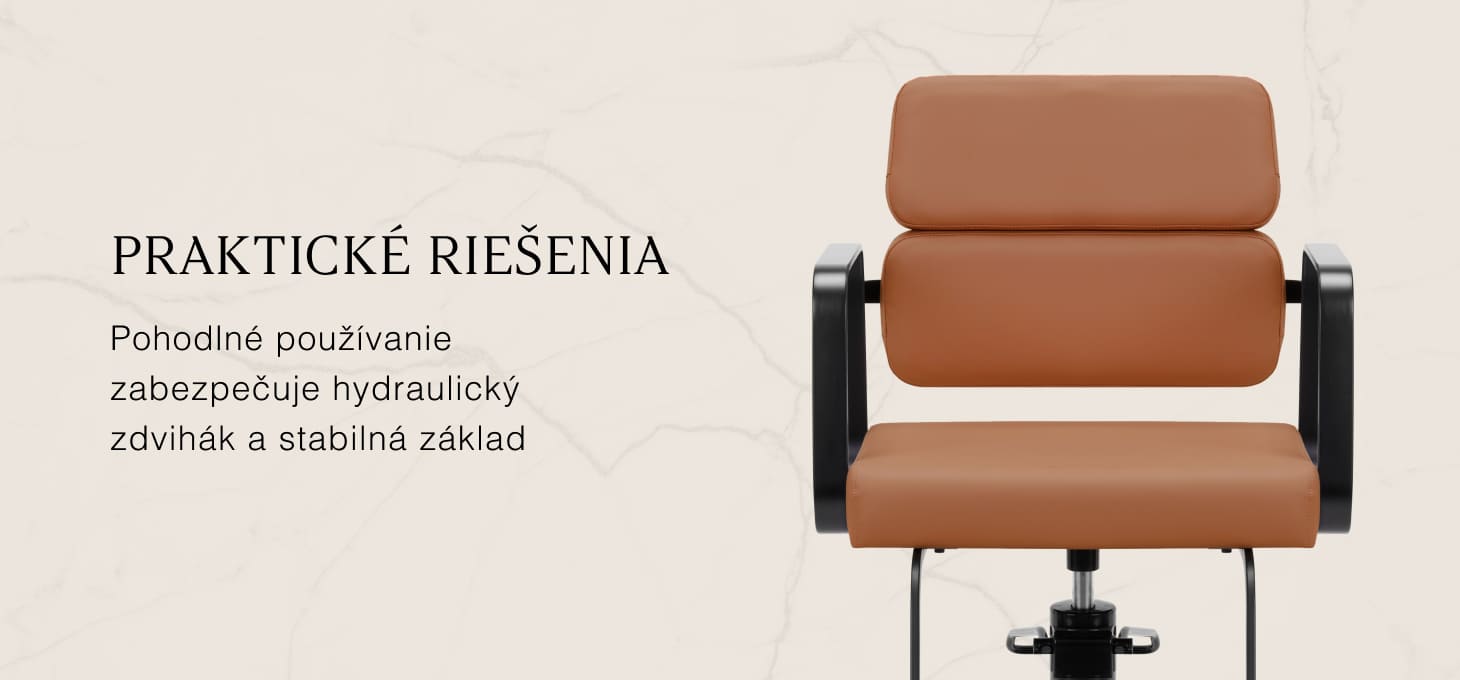 Odolný hydraulický zdvihák umožňuje nastaviť úroveň sedadla v rozsahu 49 - 61 cm - aj keď klient na stoličke sedí. Poskytuje ergonomickejšie pracovné prostredie, pretože umožňuje nastaviť úroveň sedadla podľa výšky klienta aj kaderníka. Vizuálne zaujímavé operadlo umožňuje pohodlnú polohu a poskytuje vynikajúcu oporu chrbta, čo je dôležité najmä pri ošetreniach trvajúcich niekoľko hodín. Veľkým plusom tohto modelu je otvor ponechaný medzi operadlom a sedadlom. Uľahčuje udržiavanie čistoty v salóne, pretože umožňuje ľahké vymetanie vlasov z každého zákutia kresla. To uľahčuje prípravu pracoviska medzi jednotlivými klientmi.