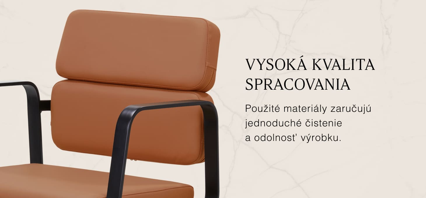 Výplň z odolnej peny odolnej voči deformáciám a čalúnenie z na dotyk príjemnej syntetickej kože zaručujú odolnosť nábytku a jeho pohodlné používanie po dlhú dobu. Vďaka nim je tiež odolný voči vlhkosti, trvácny a ľahko sa čistí. Poťah v béžových odtieňoch mu dodáva jedinečný charakter. Zariadenie sa vyznačuje moderným dizajnom, vďaka ktorému kreslo vyzerá skvele v mnohých profesionálnych salónoch.