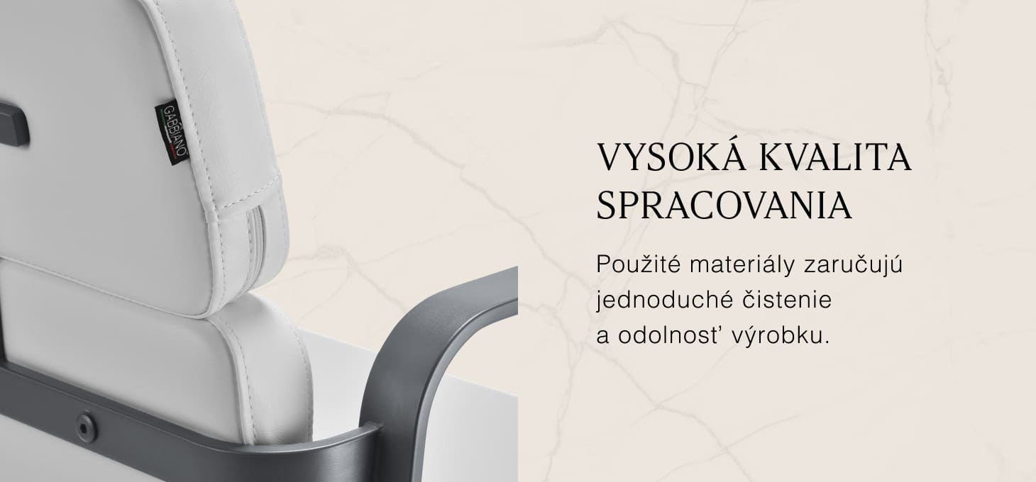 Výplň z odolnej peny odolnej voči deformáciám a čalúnenie z na dotyk príjemnej syntetickej kože zaručujú odolnosť nábytku a jeho pohodlné používanie po dlhú dobu. Vďaka nim je tiež odolný voči vlhkosti, trvácny a ľahko sa čistí. Poťah v bielých odtieňoch mu dodáva jedinečný charakter. Zariadenie sa vyznačuje moderným dizajnom, vďaka ktorému kreslo vyzerá skvele v mnohých profesionálnych salónoch.