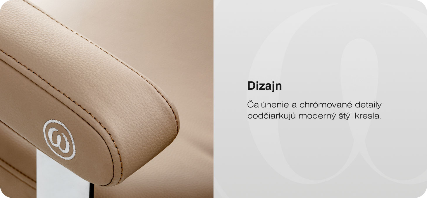 Kreslo sa vyznačuje moderným, elegantným dizajnom, ktorý podčiarkuje profesionálny charakter salónu a dokonale zapadá do zariadenia moderných kaderníckych interiérov. Čalúnenie z vysoko kvalitnej syntetickej kože v štýlovom béžovom odtieni dodáva celku ľahkosť a eleganciu a zároveň vnáša do priestoru salónu príjemný, estetický akcent. Čalúnenie sa vyznačuje trvácnosťou, odolnosťou voči vlhkosti a ľahkou údržbou, čo má osobitný význam pri každodennom používaní v kaderníckom salóne. Chrómované konštrukčné prvky podčiarkujú moderný dizajn kresla a stabilná, okrúhla základňa zaisťuje pevnú oporu a estetické zakončenie celého tvaru.