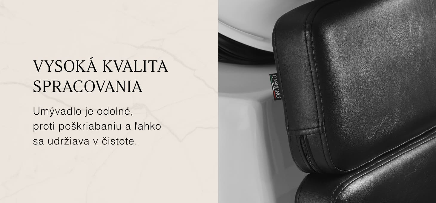 Primeraná hĺbka bieleho keramického umývadla zabraňuje nadmernému striekaniu vody alebo produktov používaných počas ošetrenia. To umožňuje pohodlné a efektívne vykonávanie širokej škály služieb. Uhol misy sa dá nastaviť, čo uľahčuje jej prispôsobenie. Vďaka vysokej kvalite použitých materiálov je misa odolná, odolná voči škvrnám a poškriabaniu a veľmi ľahko sa čistí. Vhodne tvarovaná príruba a šikmé operadlo poskytujú oporu a pohodlie pri umývaní vlasov a vďaka pohodlnému plastovému prekrytiu v odtieňoch čiernej farby nebude zákazníkovi nepríjemný chlad keramického povrchu.