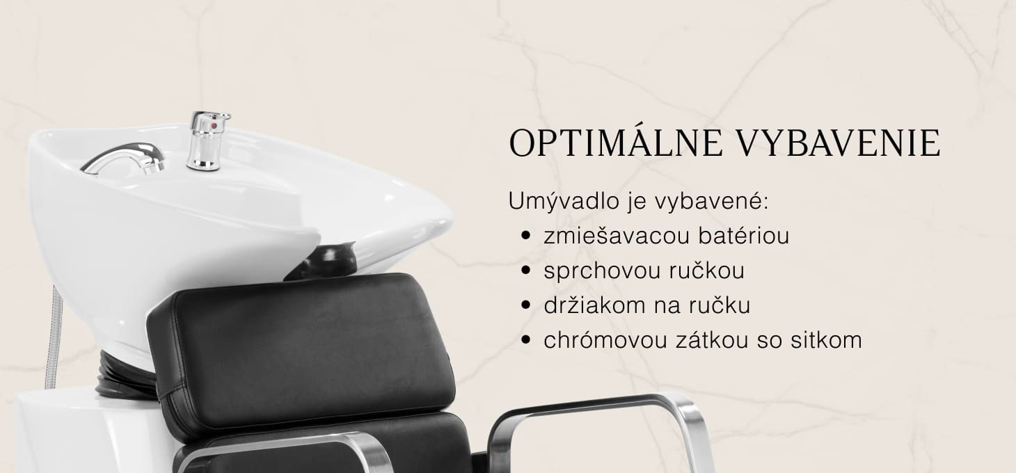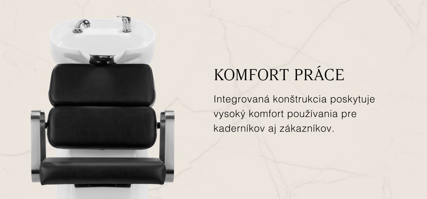 Primeraná hĺbka bieleho keramického umývadla zabraňuje nadmernému striekaniu vody alebo produktov používaných počas ošetrenia. To umožňuje pohodlné a efektívne vykonávanie širokej škály služieb. Uhol misy sa dá nastaviť, čo uľahčuje jej prispôsobenie. Vďaka vysokej kvalite použitých materiálov je misa odolná, odolná voči škvrnám a poškriabaniu a veľmi ľahko sa čistí. Vhodne tvarovaná príruba a šikmé operadlo poskytujú oporu a pohodlie pri umývaní vlasov a vďaka pohodlnému plastovému prekrytiu v odtieňoch čiernej farby nebude zákazníkovi nepríjemný chlad keramického povrchu.