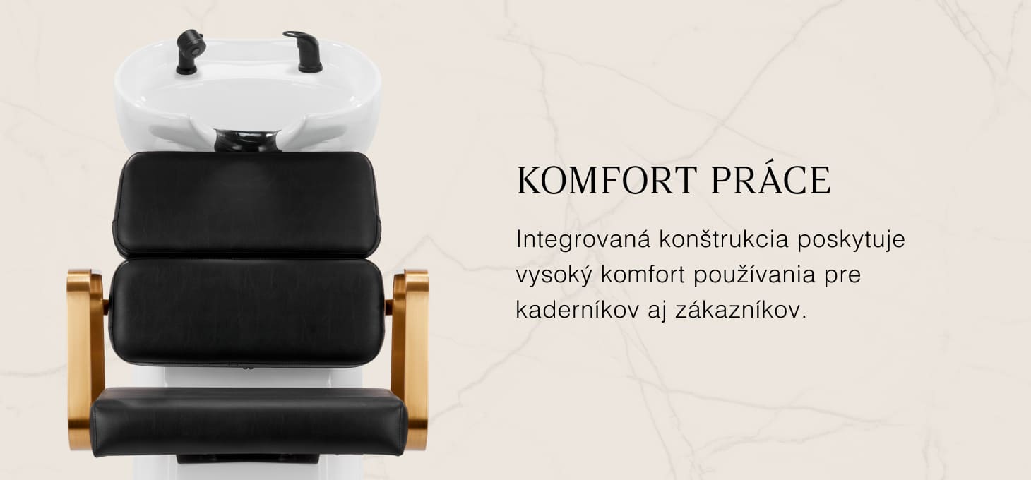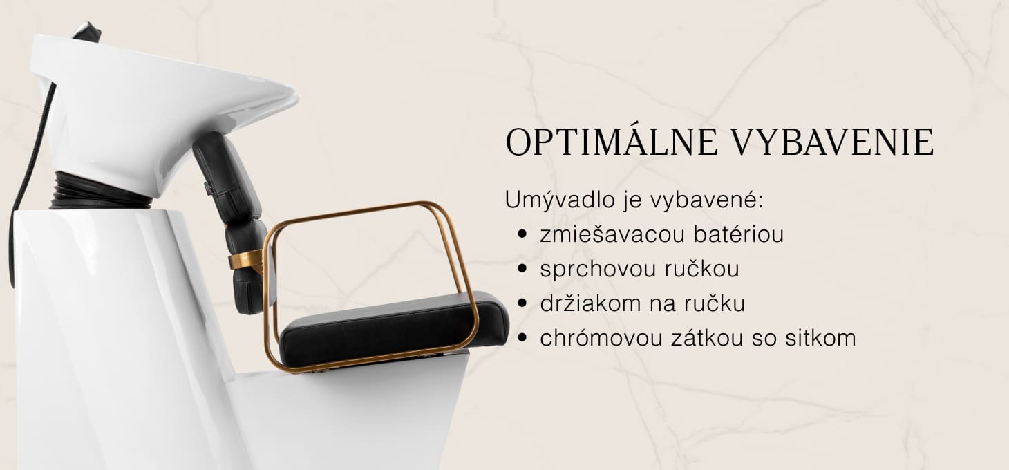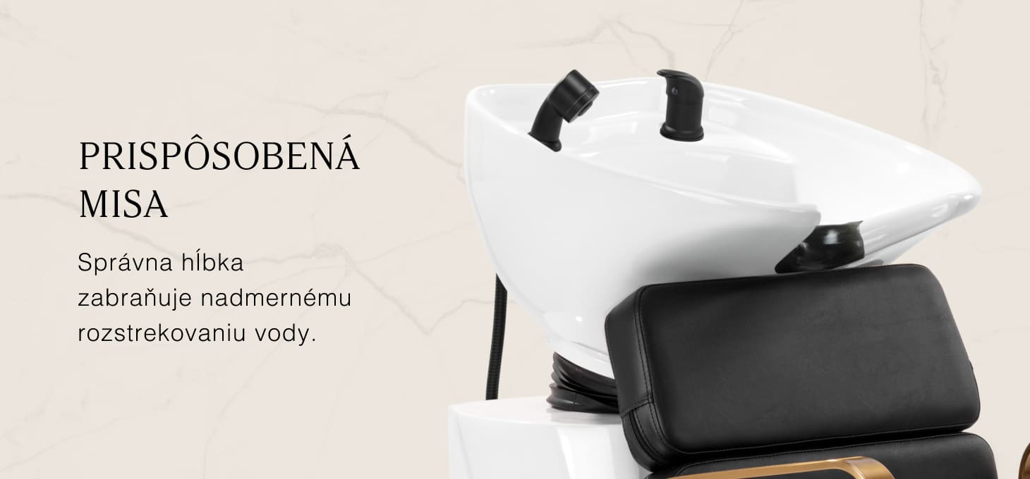 Praktická umývačka vlasov je vybavená zmiešavacou batériou, ktorá poskytuje voľný prístup k teplej a studenej vode. Vďaka tomu je možné ľahko nastaviť teplotu podľa individuálnych preferencií zákazníka. Vyhradené miesto na odloženie slúchadla zefektívňuje prácu a pochrómovaná zástrčka so špeciálnym sitkom umožňuje kontrolovať prietok vody a udržiavať vysoké hygienické štandardy v salóne. Prípojka vody bola umiestnená vo vnútri základne, čo umožňuje efektívne ukrytie potrubia. Významnou výhodou tohto modelu je otvor ponechaný medzi operadlom a sedadlom, ktorý uľahčuje udržiavanie čistoty v salóne a umožňuje ľahko vymetať nečistoty z každého zákutia kresla. Umývadlo je vyprofilované tak, aby zabezpečilo pohodlie počas rôznych ošetrení, pričom zaručuje správnu oporu chrbta. Vďaka kombinácii funkčnosti a vybavenia je práca v kaderníckom salóne ešte pohodlnejšia.