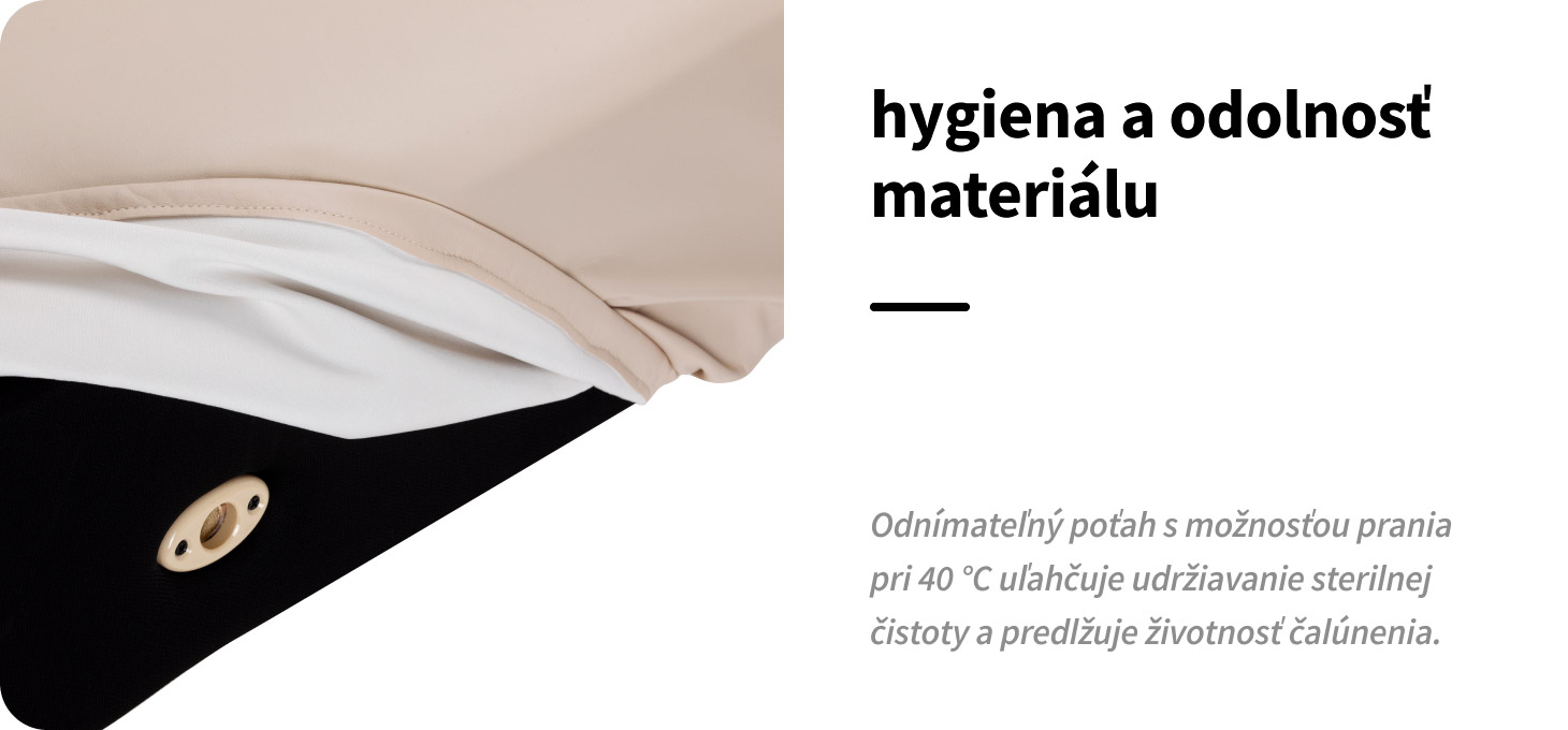 Odnímateľný poťah matraca výrazne uľahčuje každodennú prácu. Dá sa rýchlo odstrániť a vyprať (ručne alebo v práčke pri teplote do 40 °C), čo vám umožňuje ľahko udržiavať vysoké hygienické štandardy vo vašom salóne. Krátke sušenie pri nízkej teplote urýchľuje prípravu pracoviska na použitie. Správna starostlivosť bez použitia alkoholu a silných čistiacich prostriedkov pomáha dlhšie udržiavať estetický vzhľad a trvanlivosť materiálu.