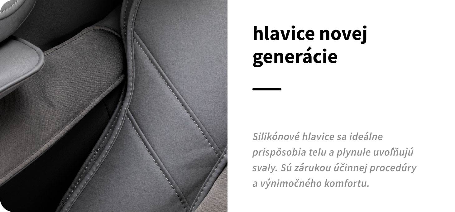 Štyri vysoko kvalitné masážne hlavy sú zodpovedné za presné ošetrenie celej oblasti chrbta. Ich viac smerové pôsobenie im umožňuje presne dosiahnuť napäté oblasti a účinne uvoľniť svaly. Moderné hlavice vyrobené z pružného silikónu sa prispôsobujú tvaru tela, čím zabezpečujú rovnomerný tlak a vysoký komfort aj počas intenzívnejších sedení. Použitý materiál zvyšuje účinnosť masáže a poskytuje prirodzený, hladký pocit podobný dotyku ľudských rúk.
