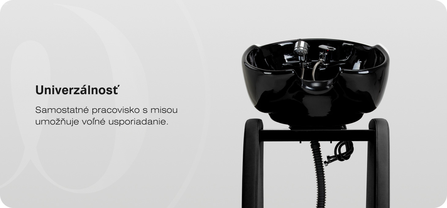 Model bol navrhnutý ako samostatné pracovisko s umývadlom, ktoré je možné umiestniť za vybraný kadernícky stoličku. Takéto riešenie umožňuje používať obľúbené modely stoličiek a ľahko prispôsobiť ich výšku potrebám kaderníka a zákazníka, ako aj usporiadaniu pracoviska. Funkčná konštrukcia a veľká flexibilita usporiadania uľahčujú organizáciu pracovného priestoru a umožňujú prispôsobiť pracovisko špecifikám salónu.