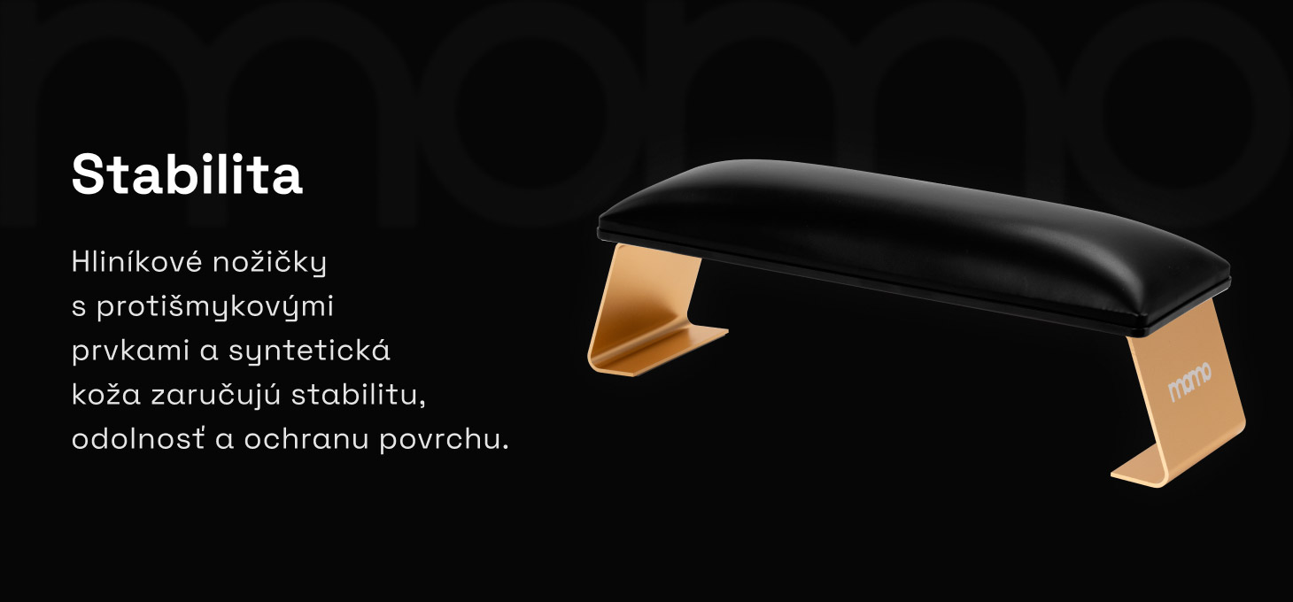 Pevné hliníkové nožičky a poťah zo syntetickej kože sa vyznačujú trvácnosťou a odolnosťou voči intenzívnemu používaniu a zároveň dodávajú celku elegantný, profesionálny vzhľad, ktorý podčiarkuje estetiku pracoviska. Protisklzové prvky na nožičkách chránia dosku pred poškriabaním a zabraňujú posúvaniu podložky počas práce, čím zabezpečujú stabilitu a bezpečnosť používania.