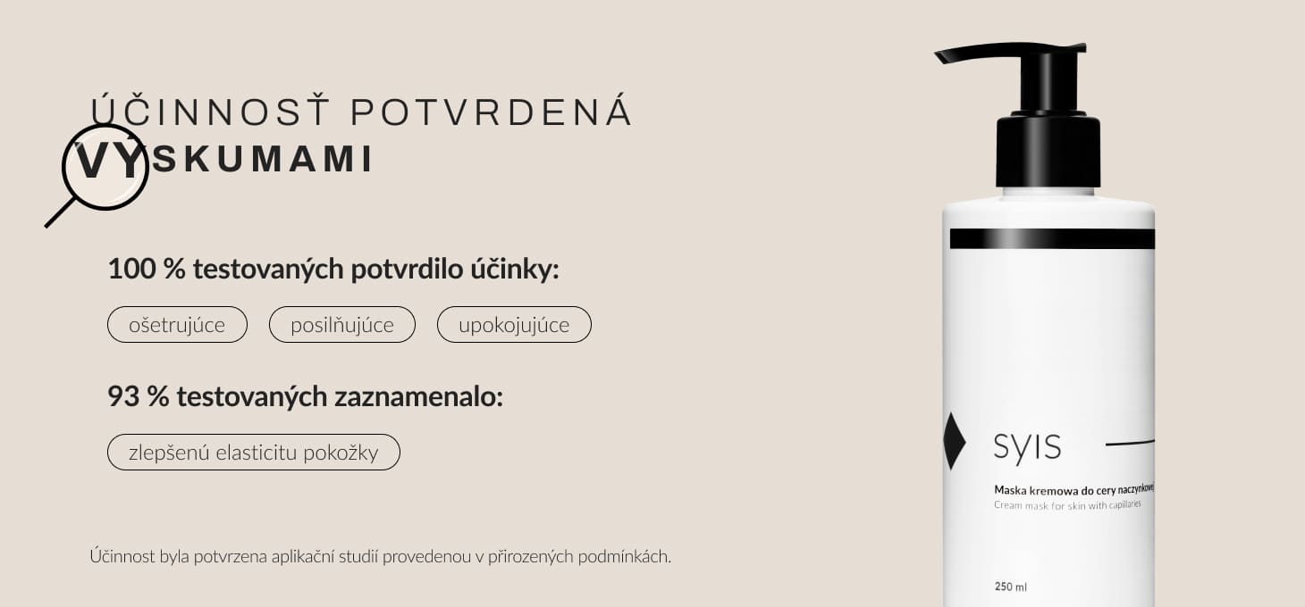 Profesionálna krémová maska SYIS na cievnu pleť bola vyvinutá pre jemnú, citlivú pleť so sklonom k začervenaniu a podráždeniu. Je ideálna na profesionálnu aj domácu starostlivosť, podporuje regeneráciu, upokojuje a posilňuje pleť.